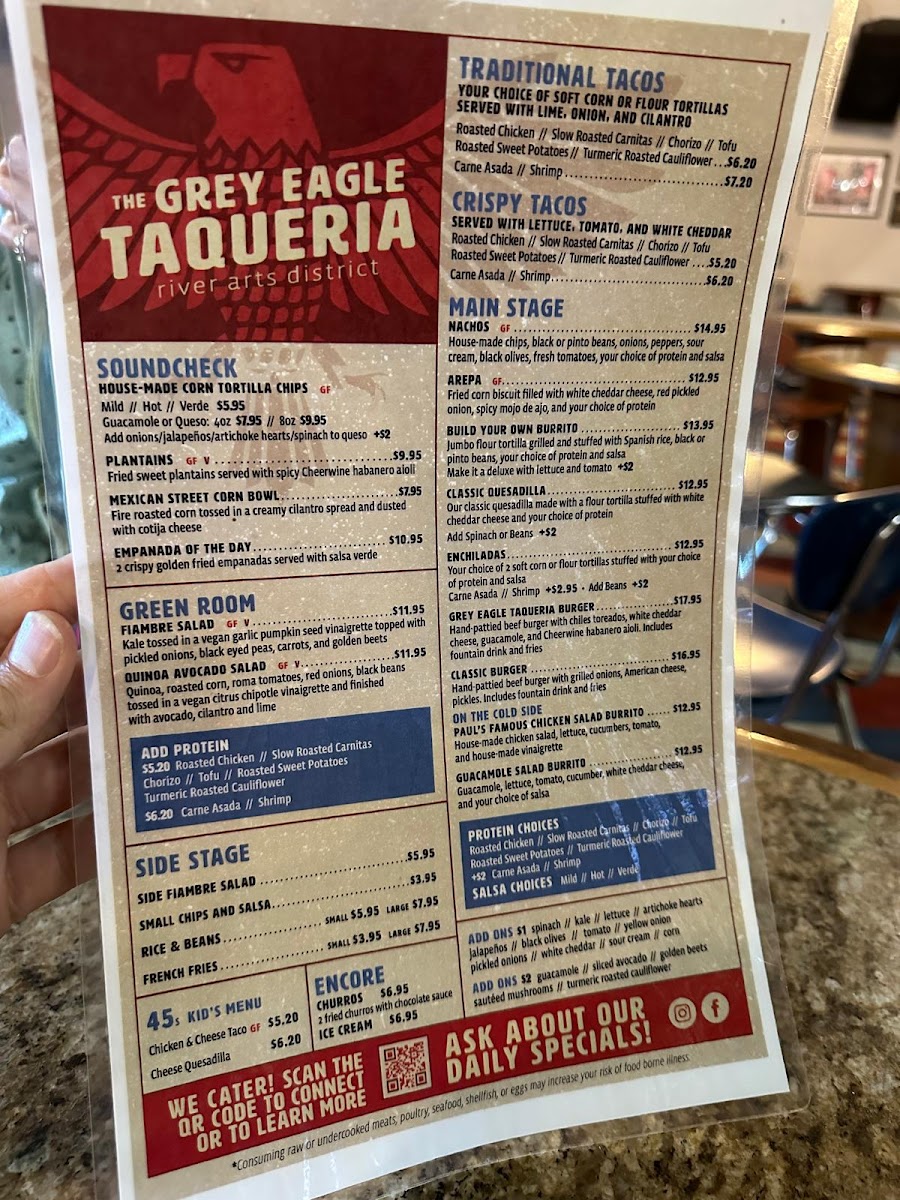 Welcome to Grey Eagle Taqueria, a vibrant culinary gem nestled in Asheville, NC. Known for its lively atmosphere and fantastic live music, Grey Eagle offers an exciting menu that celebrates the rich flavors of traditional Mexican cuisine. Patrons can indulge in a variety of tacos, including an exceptionally recommended brisket taco that promises a burst of flavor in every bite.